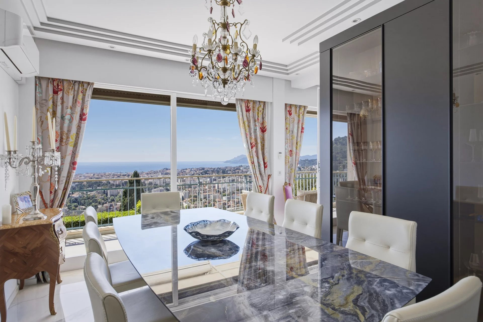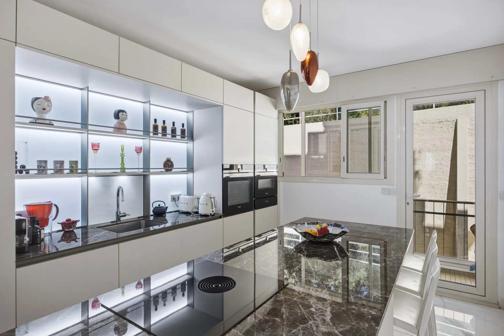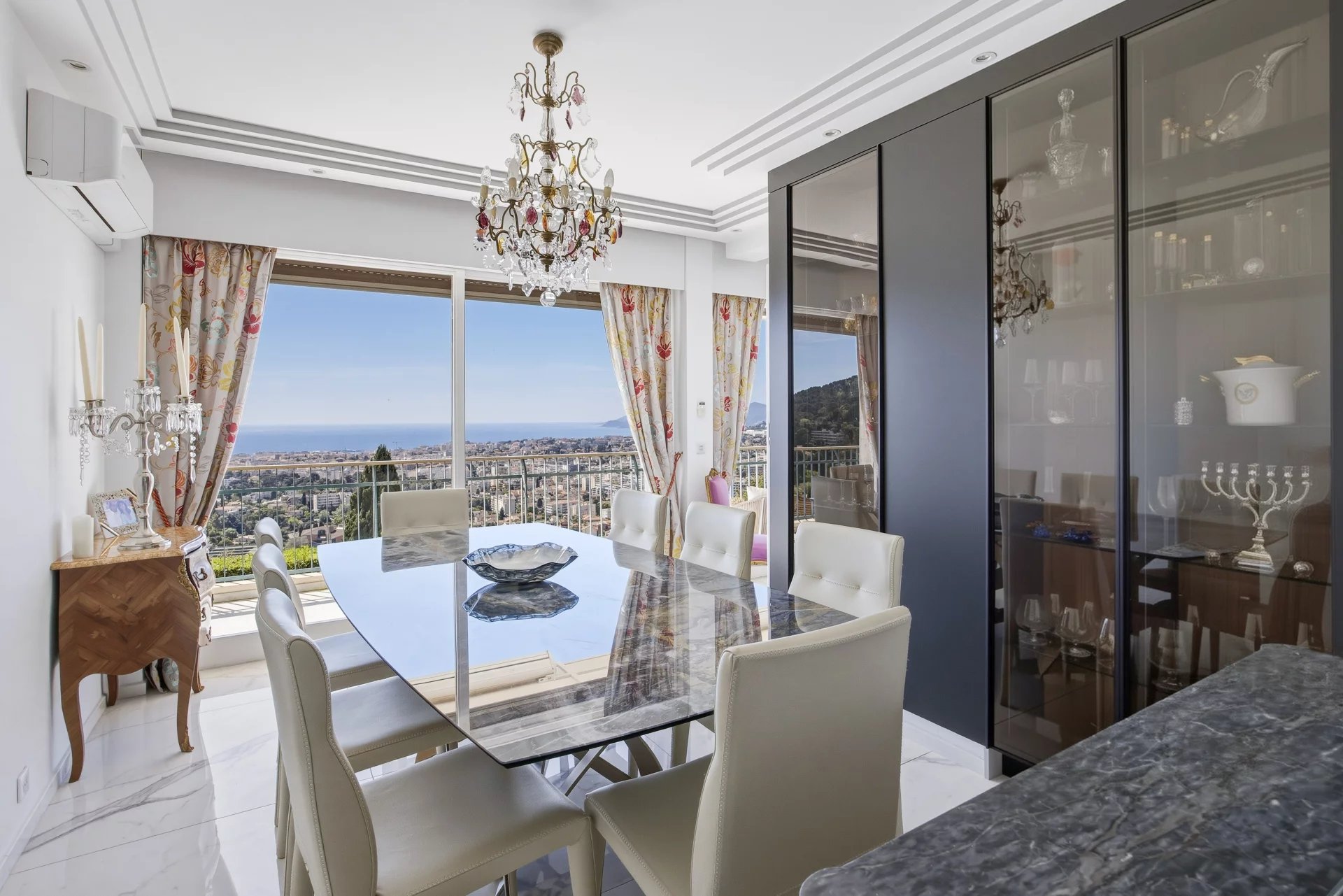 In einem hochwertigen Gebäude gelegen, bietet diese 178 m² große Wohneinheit im ersten Stock eine seltene Ausrichtung und Lebensqualität an der Côte d'Azur. Nur wenige Schritte vom alten Dorf, seinen malerischen Gassen, Geschäften und Restaurants entfernt, ist die Lage einfach ideal.
