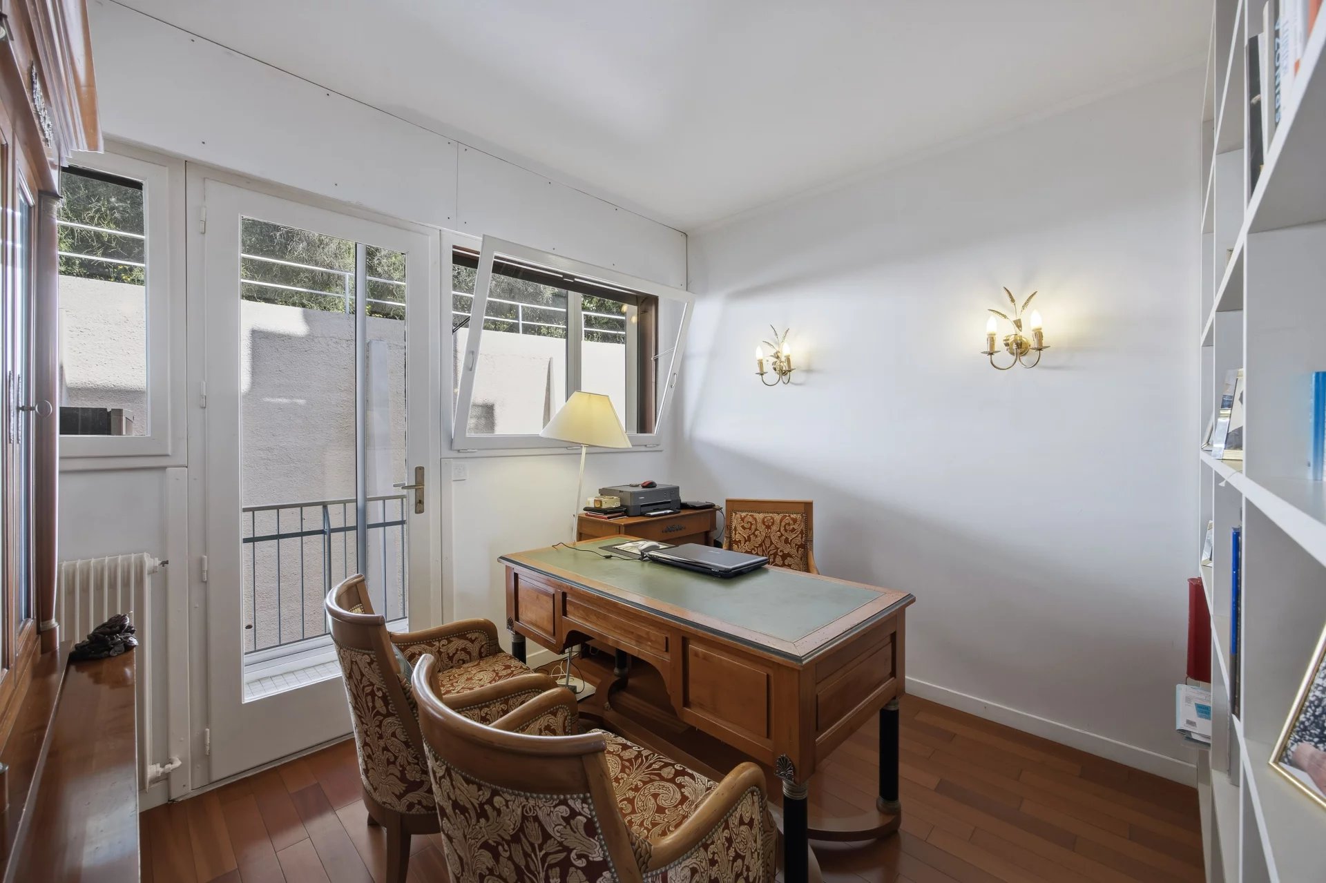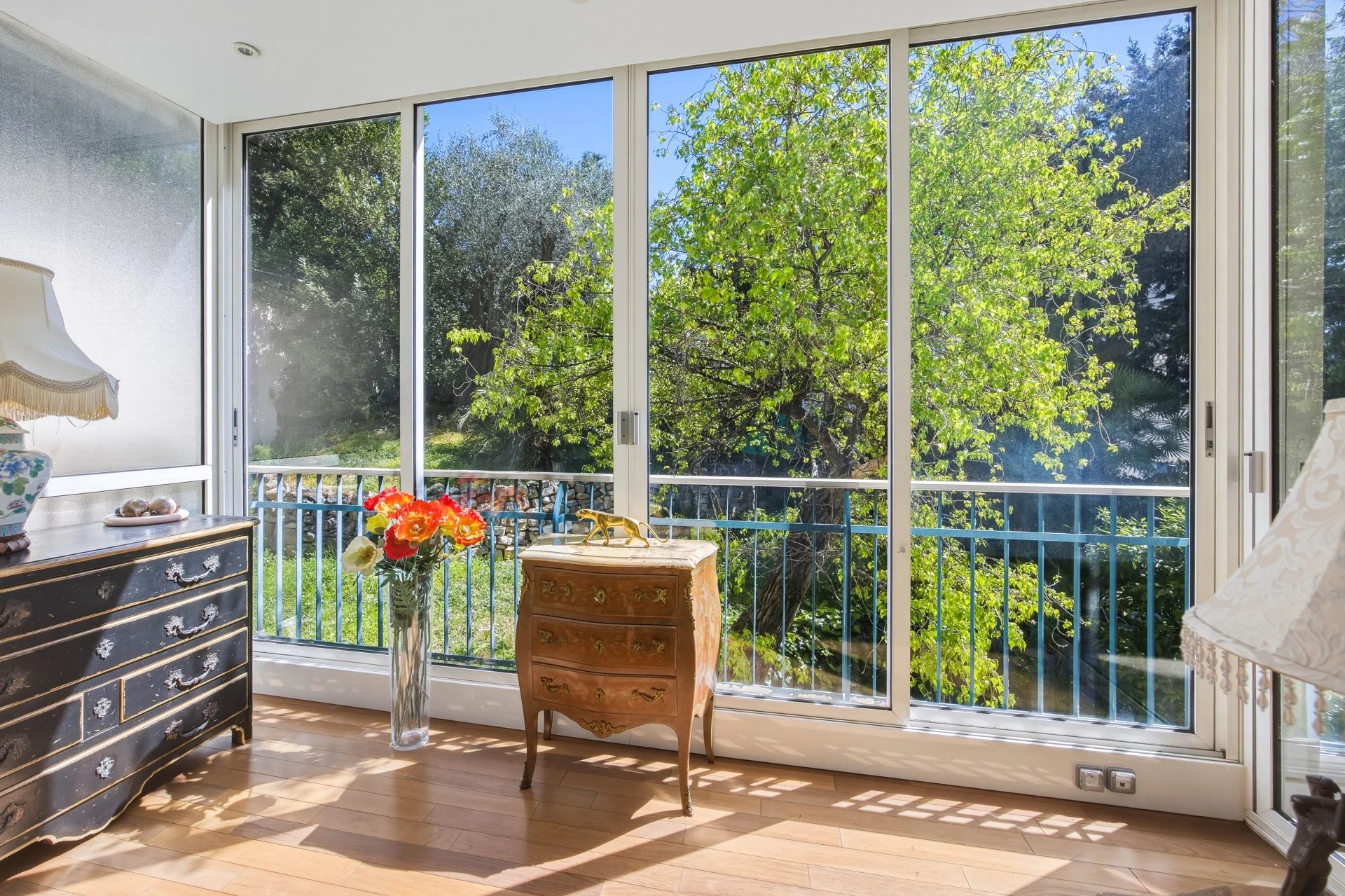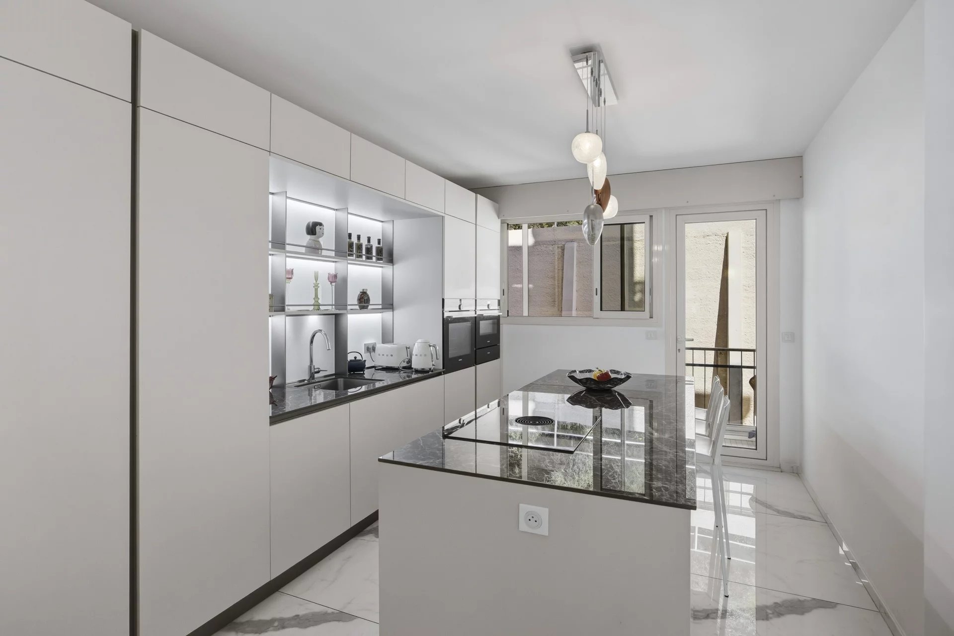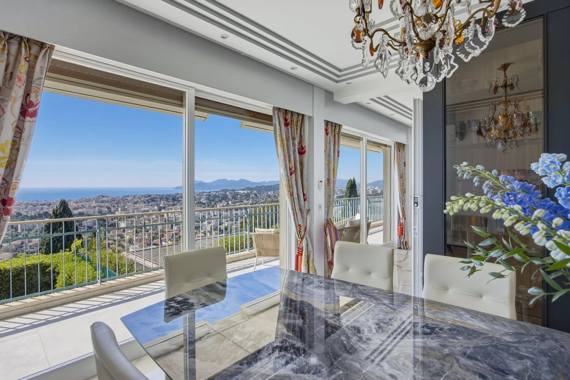 In einem hochwertigen Gebäude gelegen, bietet diese 178 m² große Wohneinheit im ersten Stock eine seltene Ausrichtung und Lebensqualität an der Côte d'Azur. Nur wenige Schritte vom alten Dorf, seinen malerischen Gassen, Geschäften und Restaurants entfernt, ist die Lage einfach ideal.