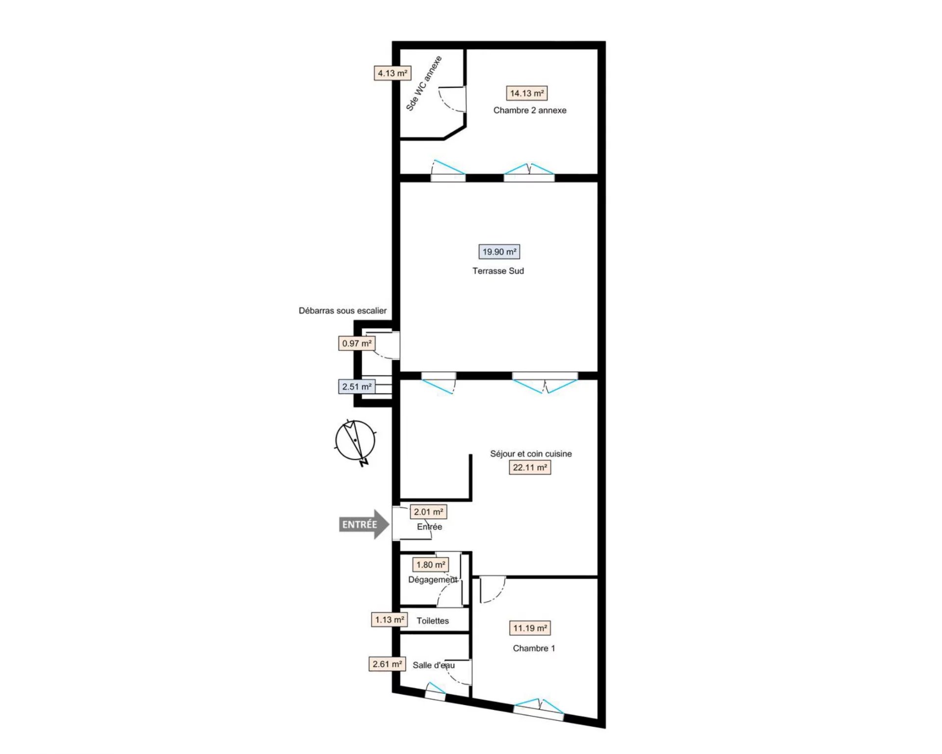 aneksu o powierzchni 20 m² (druga sypialnia), dostępnego z patio, wyposażonego w łazienkę i toaletę, który może również służyć jako przestrzeń do pracy. Idealne rozwiązanie dla większej prywatności, a także duży atut w przypadku wynajmu krótkoterminowego.